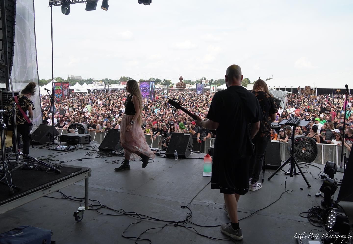 One of the youngest and freshest up-and-coming bands to play Louder Than Life this year, Nail Bite managed to do something that seemed impossible–they drew a main stage-sized crowd to the side stage on Thursday midday. One of the most unique acts we saw all weekend, Nail Bite started off their set with an intense dubstep build-up and breakdown that launched into their music that mixes a multitude of genres with heavy metal.