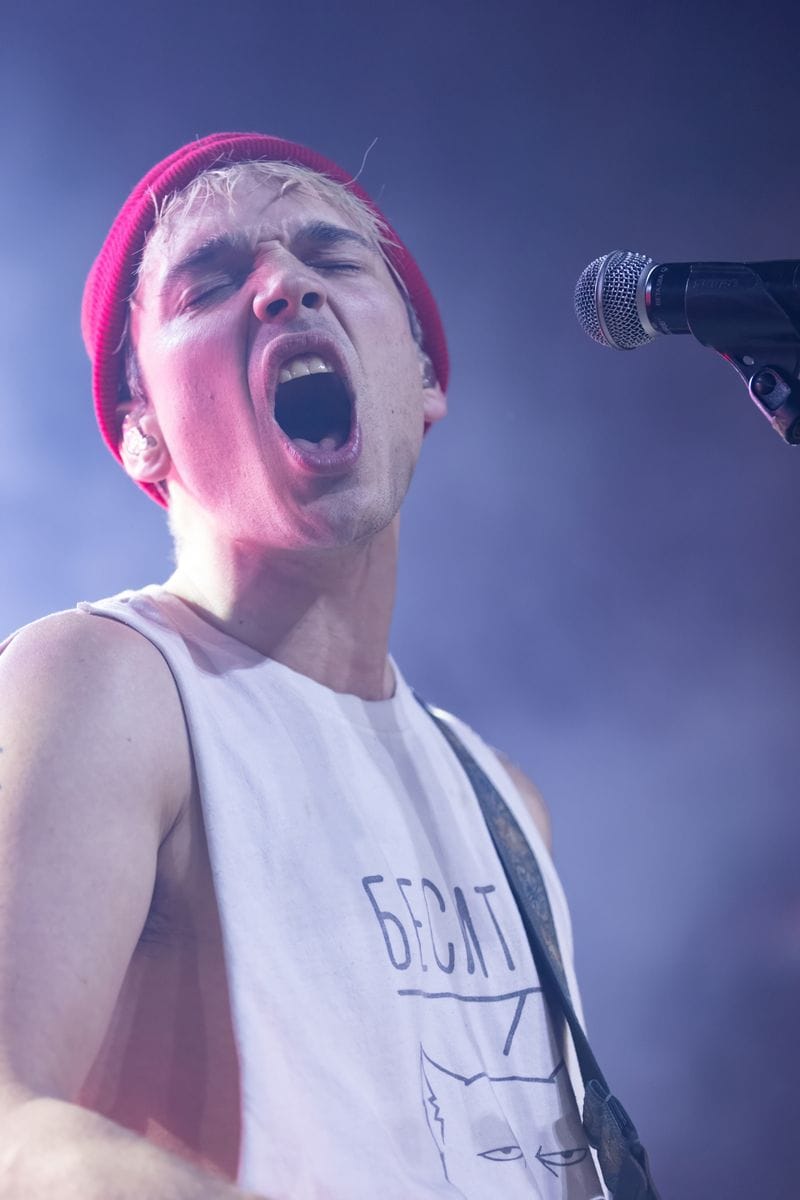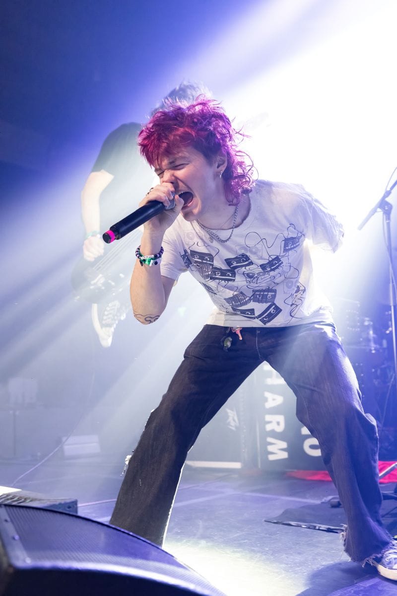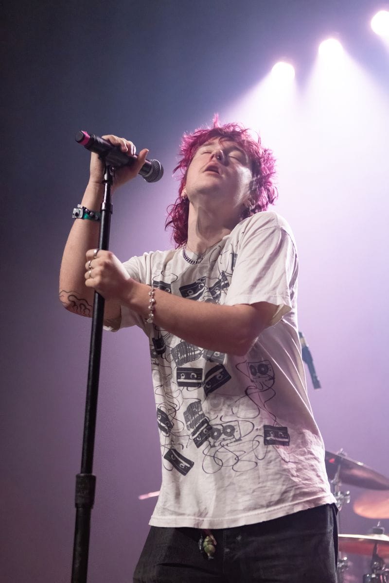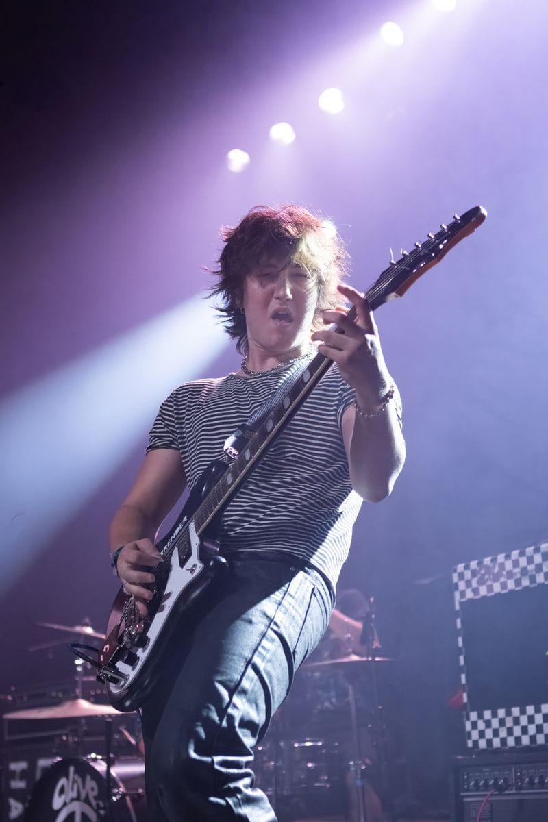 The second act of the night was Olive Vox. These guys understood the assignment – they brought energy, and great songs, and completely won over the crowd from the get-go. Bassist Ben Reid couldn’t be contained, and was constantly jumping off his riser, knees raised high. He was complemented by Caden Shea on guitar, drummer Dayton Phillips, and vocalist Parker James. Parker was all over the place, sticking his face into every camera lens he saw, and playing it up for the audience. These guys are fun to see live, and their catalogue of songs is catchy and worth listening to, even if you’re only hearing them for the first time.
