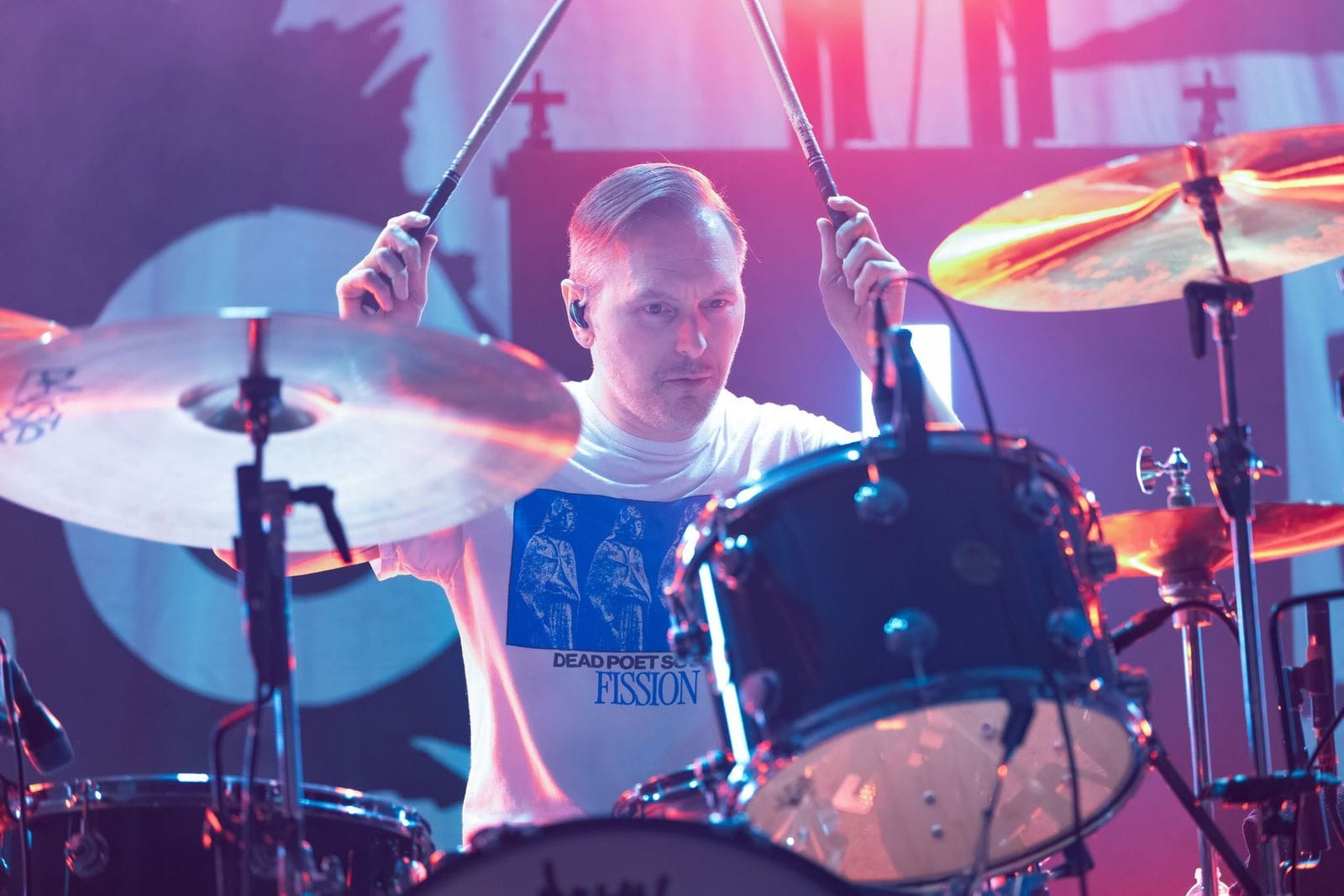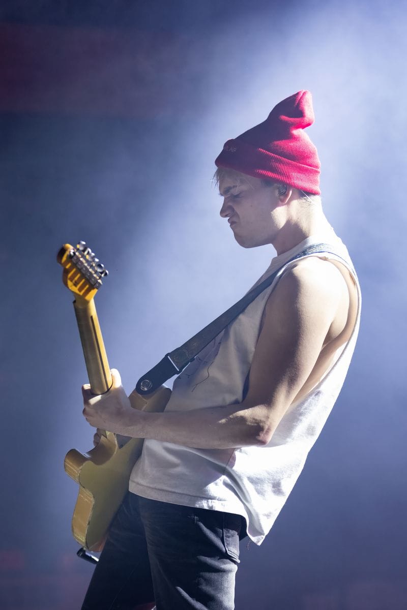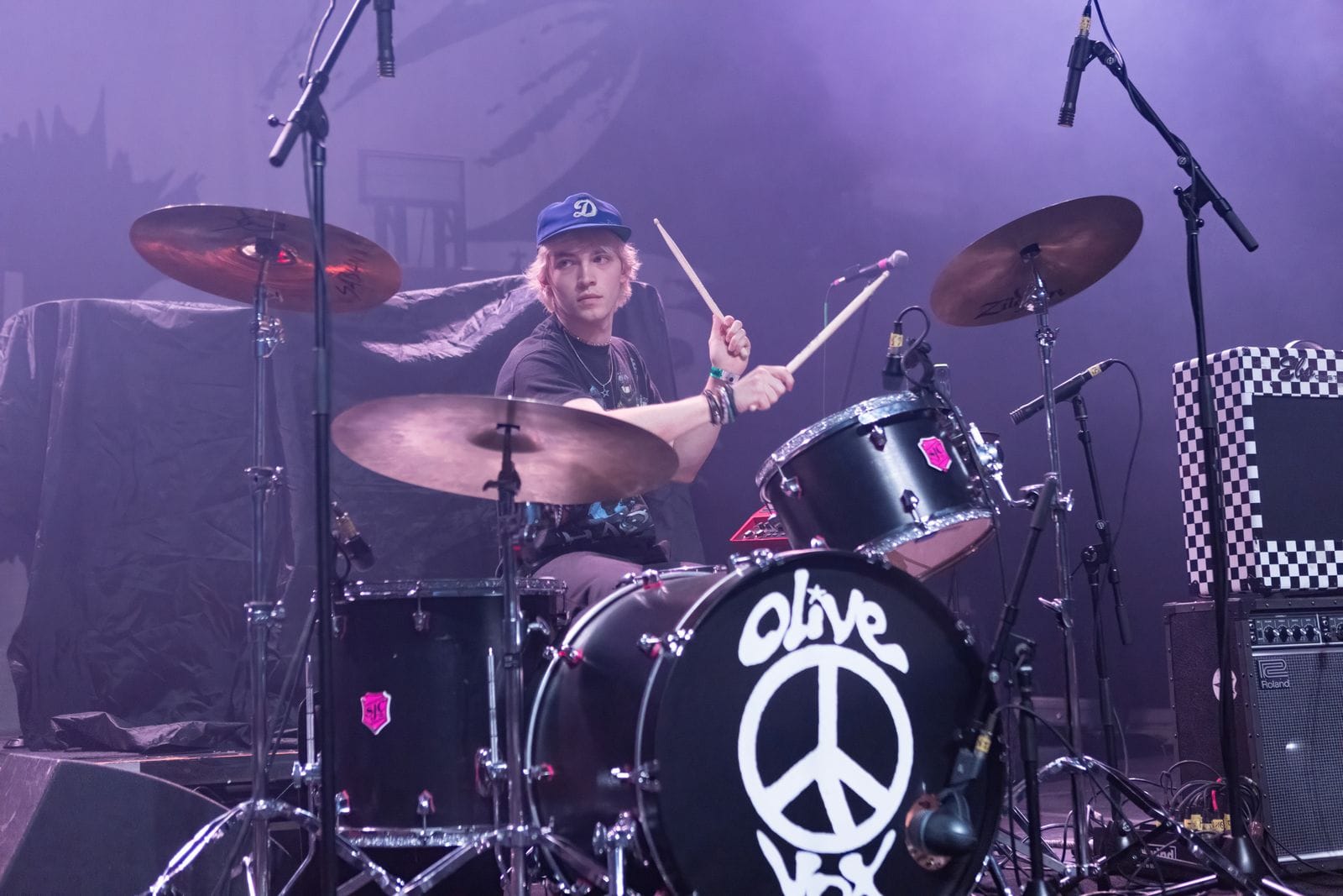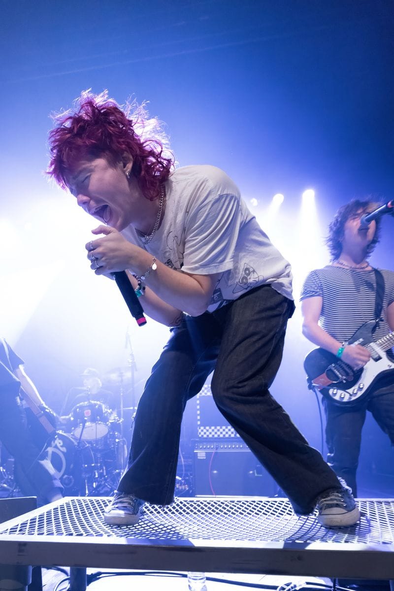 The second act of the night was Olive Vox. These guys understood the assignment – they brought energy, and great songs, and completely won over the crowd from the get-go. Bassist Ben Reid couldn’t be contained, and was constantly jumping off his riser, knees raised high. He was complemented by Caden Shea on guitar, drummer Dayton Phillips, and vocalist Parker James. Parker was all over the place, sticking his face into every camera lens he saw, and playing it up for the audience. These guys are fun to see live, and their catalogue of songs is catchy and worth listening to, even if you’re only hearing them for the first time.