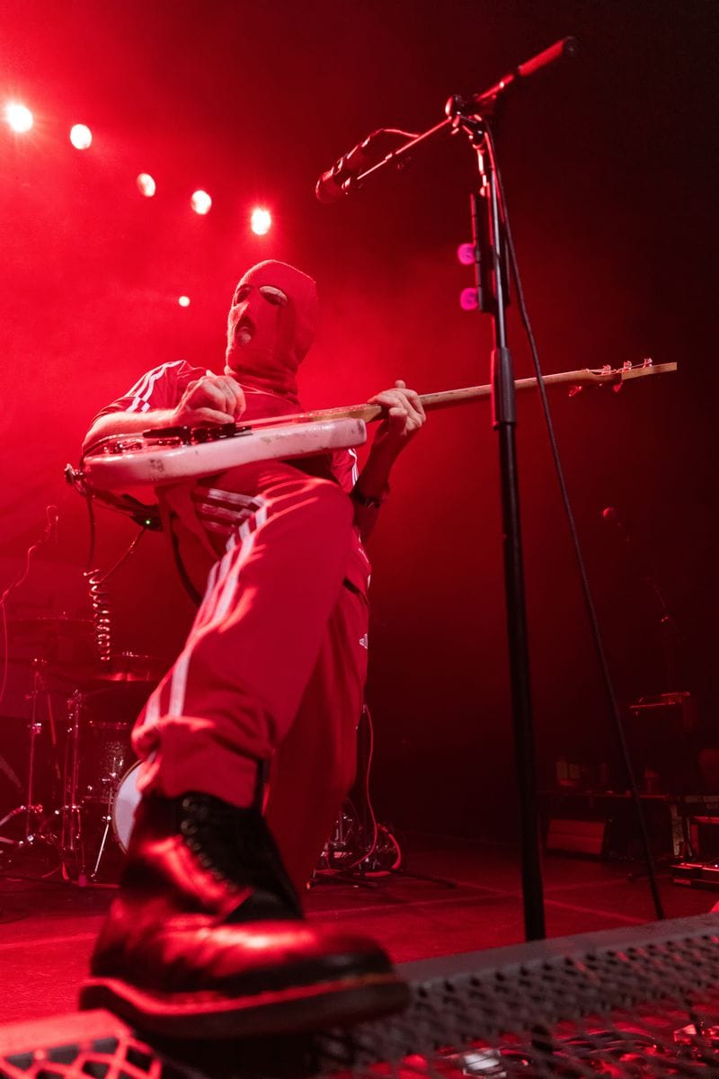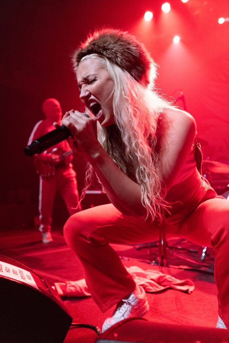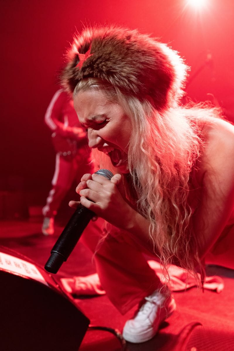 The evening started with Russian born AnDy Darling, complete with a brown fur ushanka with a large red star on the front. She was clearly the focus – the only white light on stage was pointed at her as she bounded from one side of the stage to the other, while her backing band was soaked in saturated red light, and relegated to wearing red Adidas sweatsuits and matching red ski masks. AnDy was captivating and frequently mugged for the cameras and fans. The thick accent heard during her between-song banter seamlessly disappeared when she started to sing, and her performance was the appropriate lightning rod to kick off an excellent night of live performances.