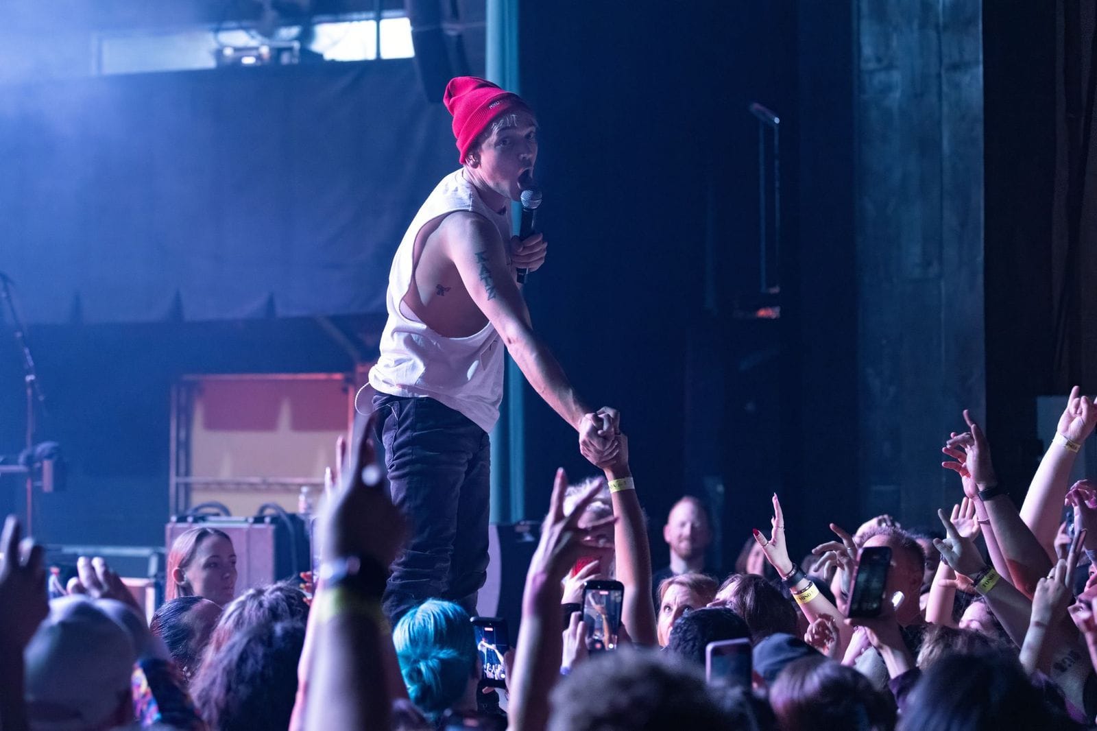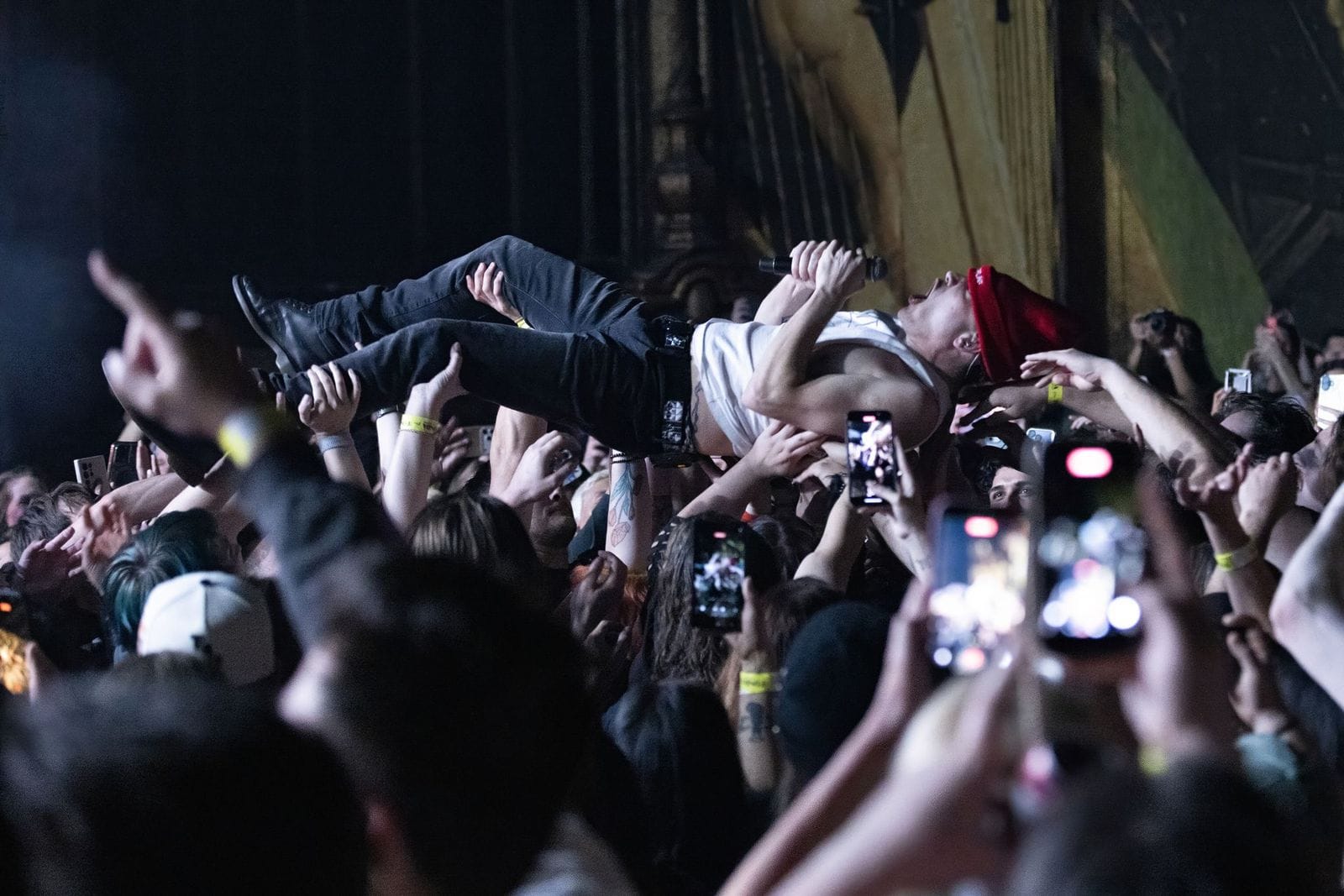 Saturday night’s show was at The Fonda Theatre in the heart of Hollywood, a cool old-school 1200 capacity theater that turns 100 years old this year. I’ve been a huge fan of Badflower since Sirius/XM’s Octane started playing several songs from their 2019 album OK, I’m Sick. Josh’s unabashedly introspective lyrics about mental health, addiction, abuse, and self-harm are raw and unfiltered – he can come across as fragile in real life, but he’s a fearless storyteller, and his fans are as diehard as they come. I’m 100% sure his music has helped countless people deal with their own heavy circumstances, and his poetic lyrics are like a lifeboat to those that need one, with his soul bare for all to see. Badflower’s concerts aren’t just another standard rock show with mosh pits and crowd surfers (although there’s plenty of that), but a cathartic and therapeutic release for their fans – a light in the darkness.