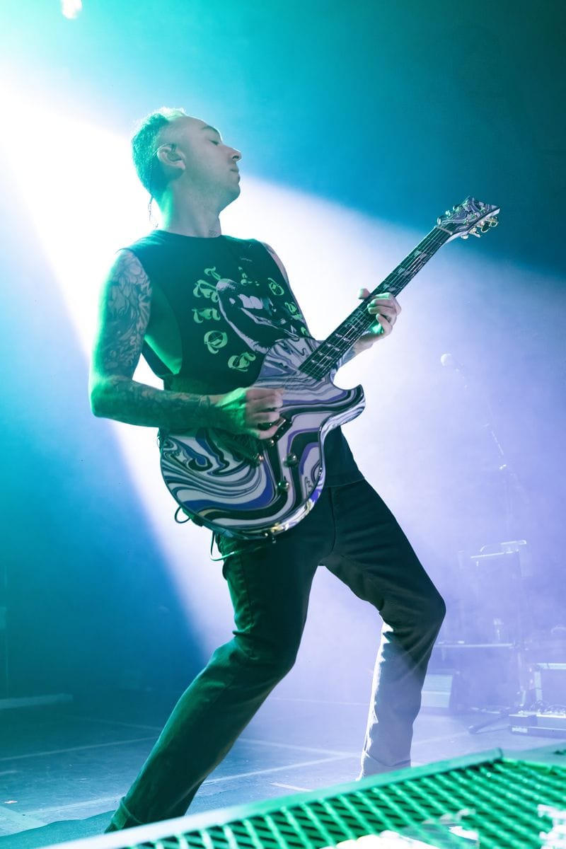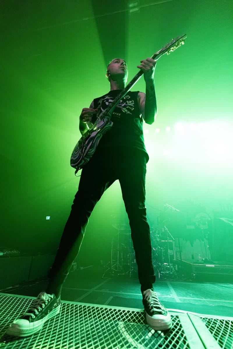 Prior to Badflower, three-piece Point North from Los Angeles hit the stage. Bathed in garish green light for much of their set, singer Jon Lundin guitarist Andy Hershey made the most of the large stage, moving with energy from side to side, as drummer Josh Parra was stuck in relative obscurity in the back, with zero light on him. From a photographer’s standpoint, this was a worst-case scenario. From the audience’s perspective, the band went over really well, with some of the biggest cheers of the night. All four bands put on a great show, and Point North’s performance complimented the night perfectly.