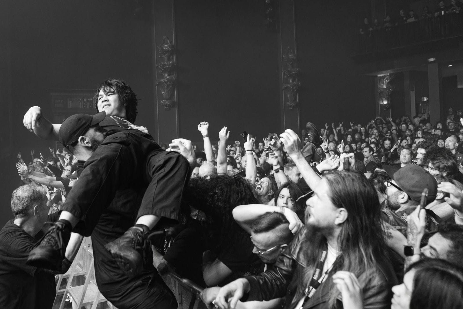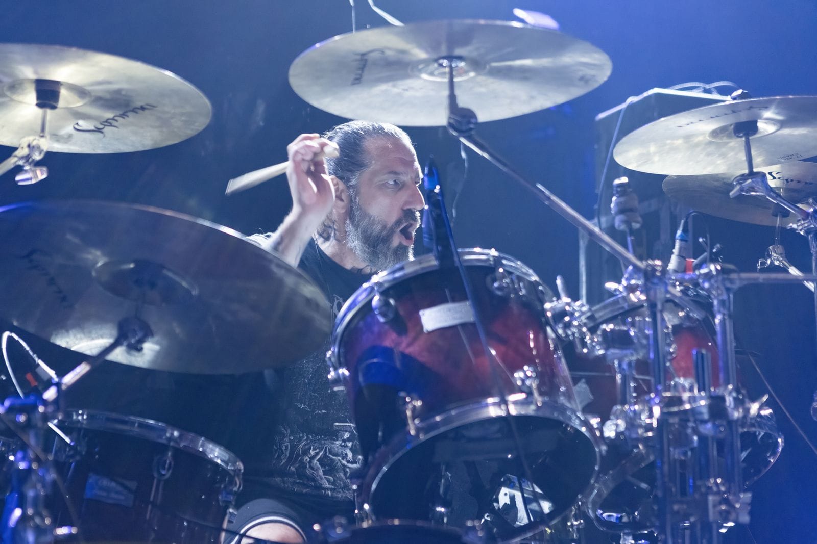 The instant Behemoth’s opening salvo, “The Shadow Elite” started to blast through the PA system, fans used it as the inspiration to go absolutely wild. A pit opened up, and crowd surfers were everywhere. Concert photographers typically get three songs in the pit before getting bounced, but on this night, we were almost sent away during the first song, as security feared for our safety. I was moving my position, and the head of security motioned that I’d have to move out of the pit and pointed to the constant stream of people coming over the top of the barricade. I nodded, moved to the side, and kept shooting with my off eye towards the security guard, as did the other photographers. Eventually, security had too much on their hands to worry about us, and we kept doing our thing as we had before. I’ve never had anything like that happen, and it’s a testament to Behemoth and their passionate fans that they were able to stir up such a ruckus during the first song.