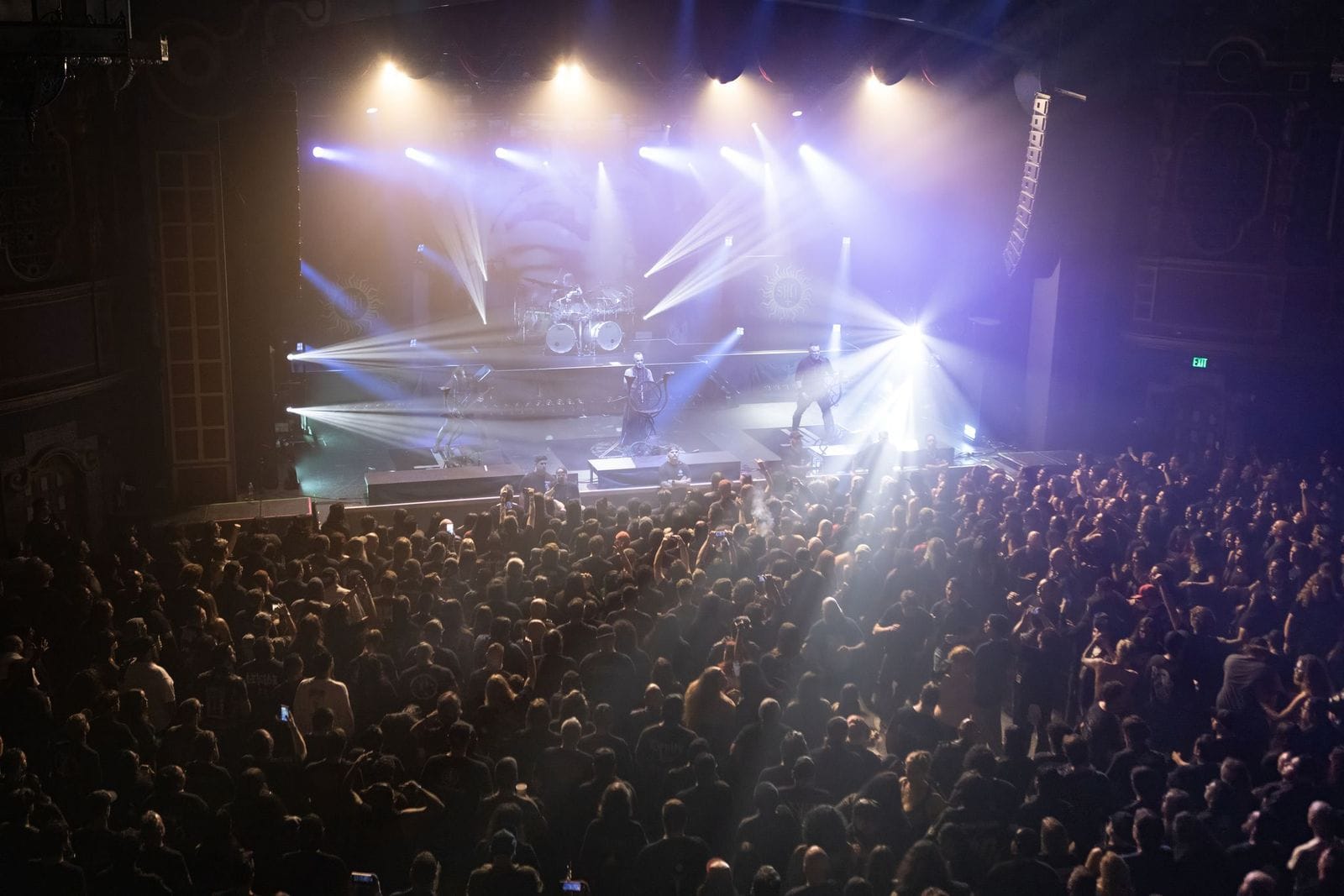 The first night of Behemoth’s “The Godless IV Tour” kicked off on Tuesday in San Diego at The Observatory North Park. The Observatory is a restored 1930’s theater with excellent sound that holds 1100 people, but there’s no way only 1100 people were in attendance – once the band was on stage, movement in the venue was next to impossible.