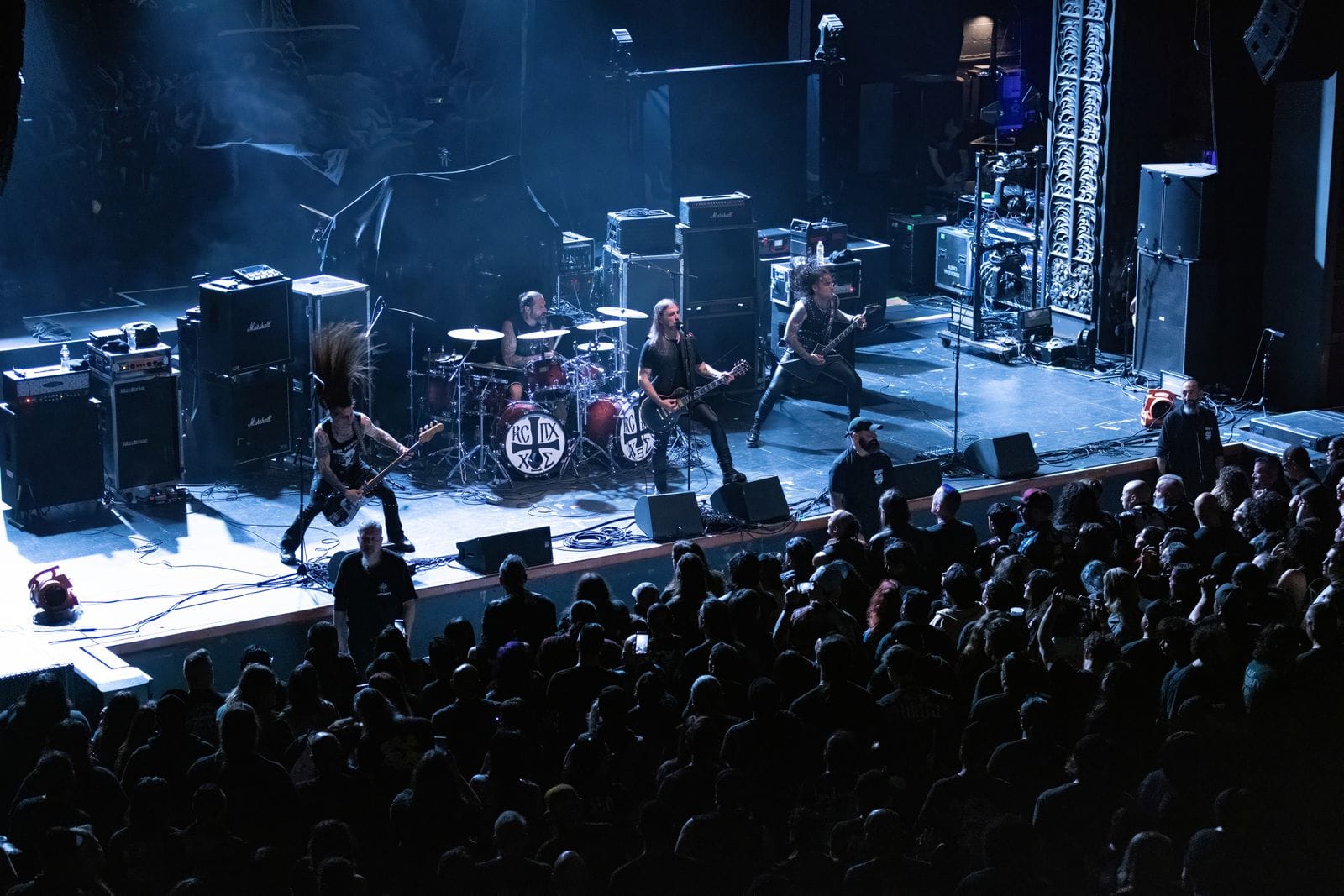 Rotting Christ are from Greece, forming in 1987 by brothers Sakis and Themis Tolis. Over the course of their career, there’s been controversy regarding their name, and they’ve been forced to cancel concert dates, had immigration issues getting into various countries to play shows, and on one occasion, they were thrown in jail upon entering the country of Georgia on suspicion of terrorism. With the “Godless” theme of this tour and a strength in numbers approach, they were in good company on this night. By the time the last note of Rotting Christ’s closer, “Grandis Spiritus Diavolos,” faded out from the PA system, their set was deemed a complete success by the packed house in San Diego.