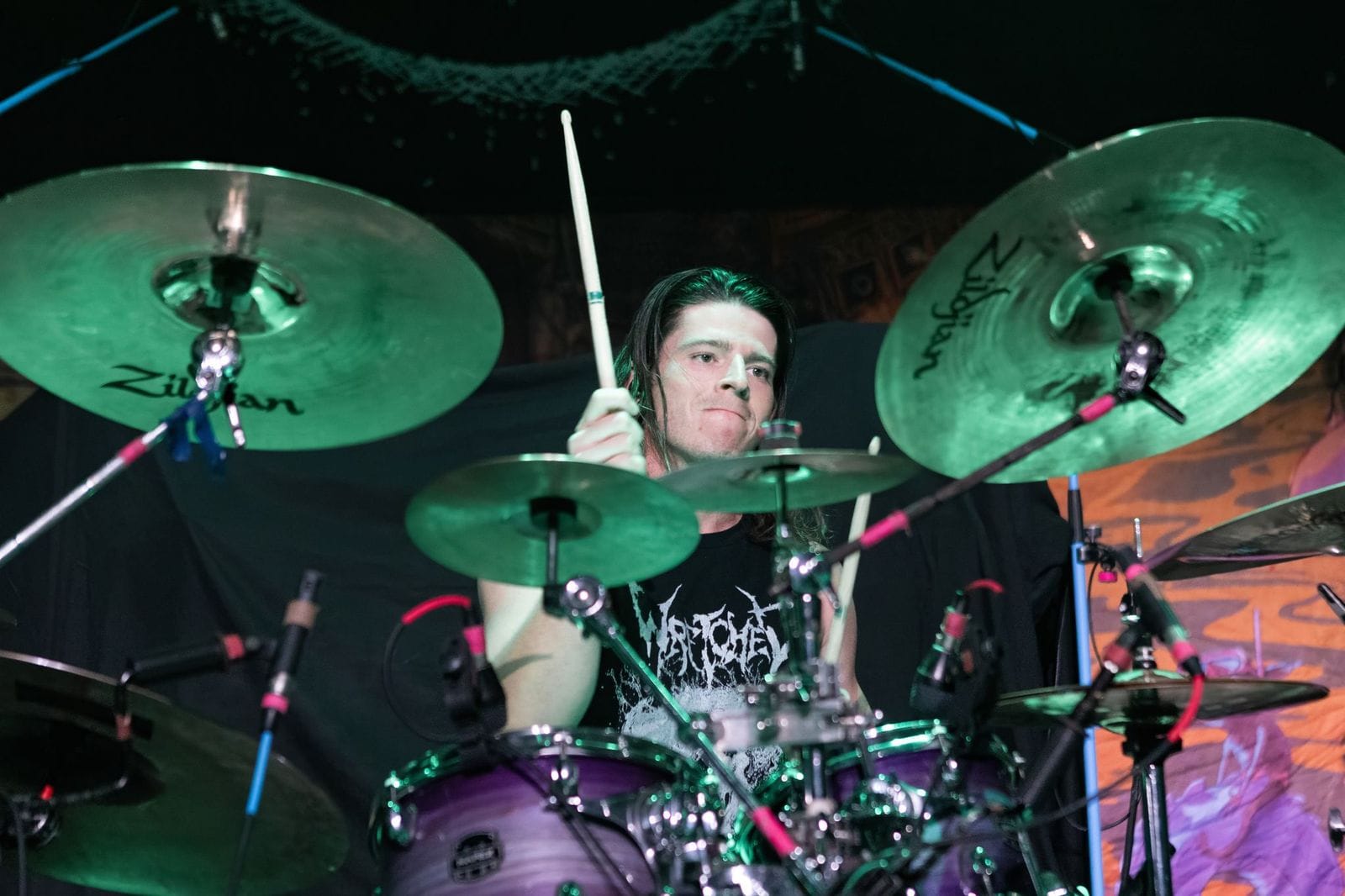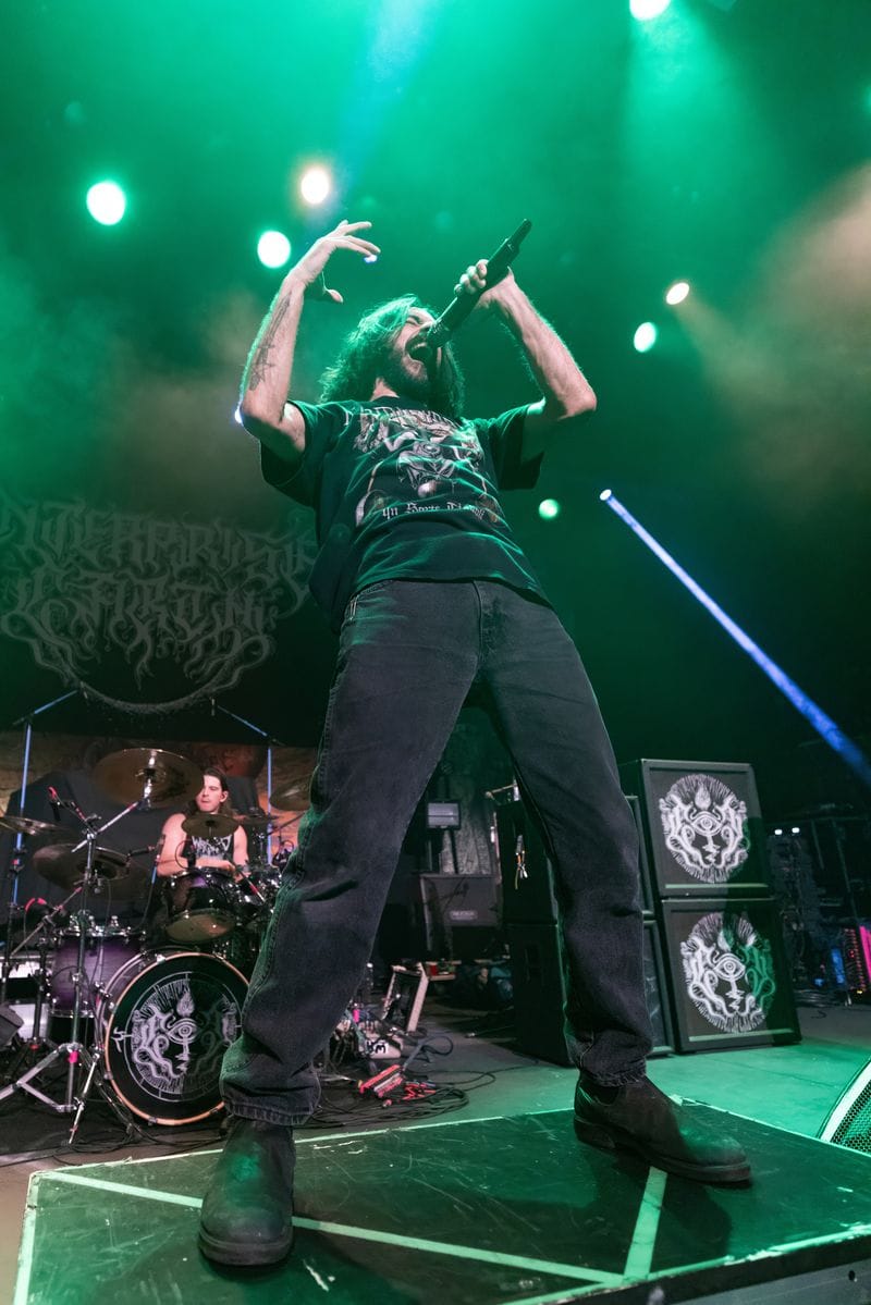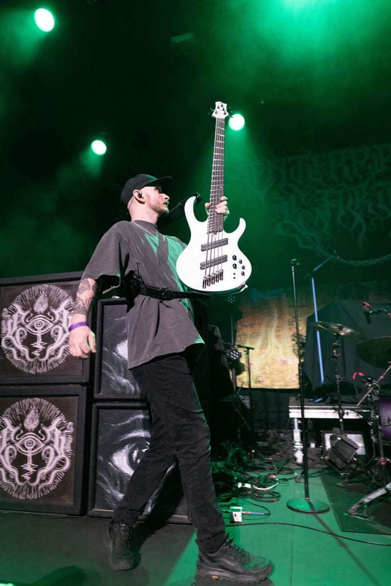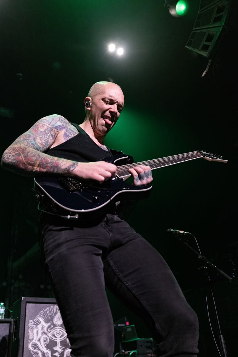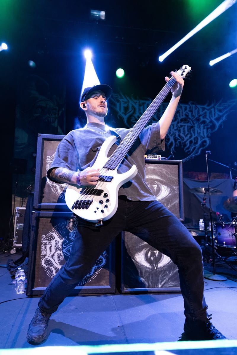The first thing I noticed when Enterprise Earth started up was that Travis Worland’s vocals were unbelievable – screams so loud and high that they pierced my ear protection like they weren’t there, and yells without the mic that could be clearly heard from the back of the venue. Travis also encouraged moshing, horns in the air, and calling on the audience to “bang your fucking head”…a challenge that was happily accepted. As a way of celebrating those courageous enough to take him up on his request, he made his way to the front of the stage for every crowd surfer that landed in the pit to fist bump each and every one of them.