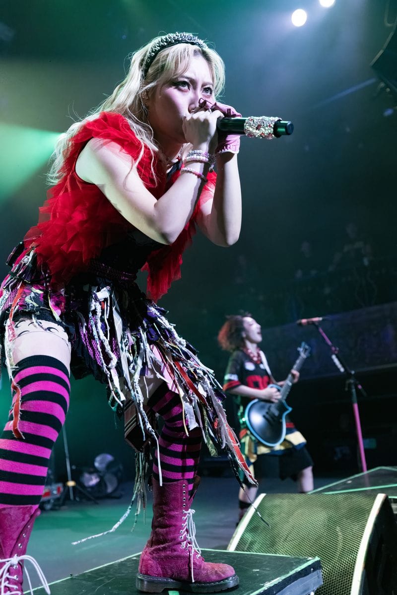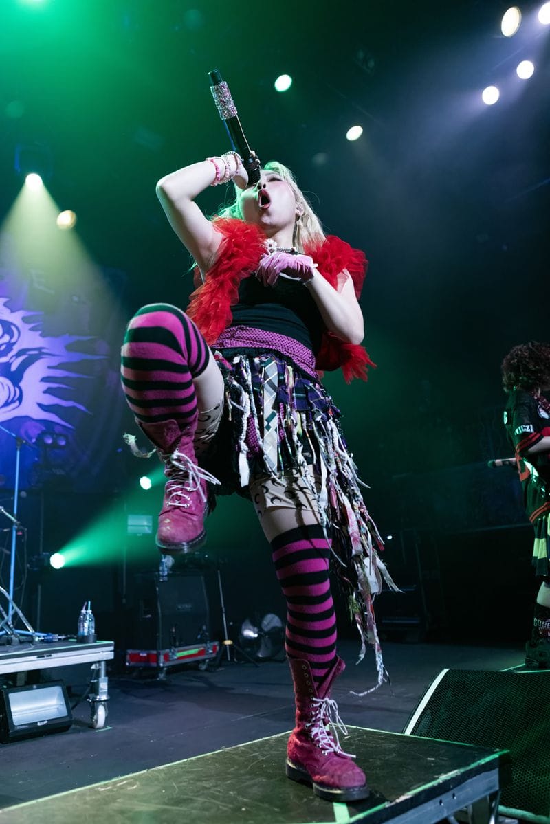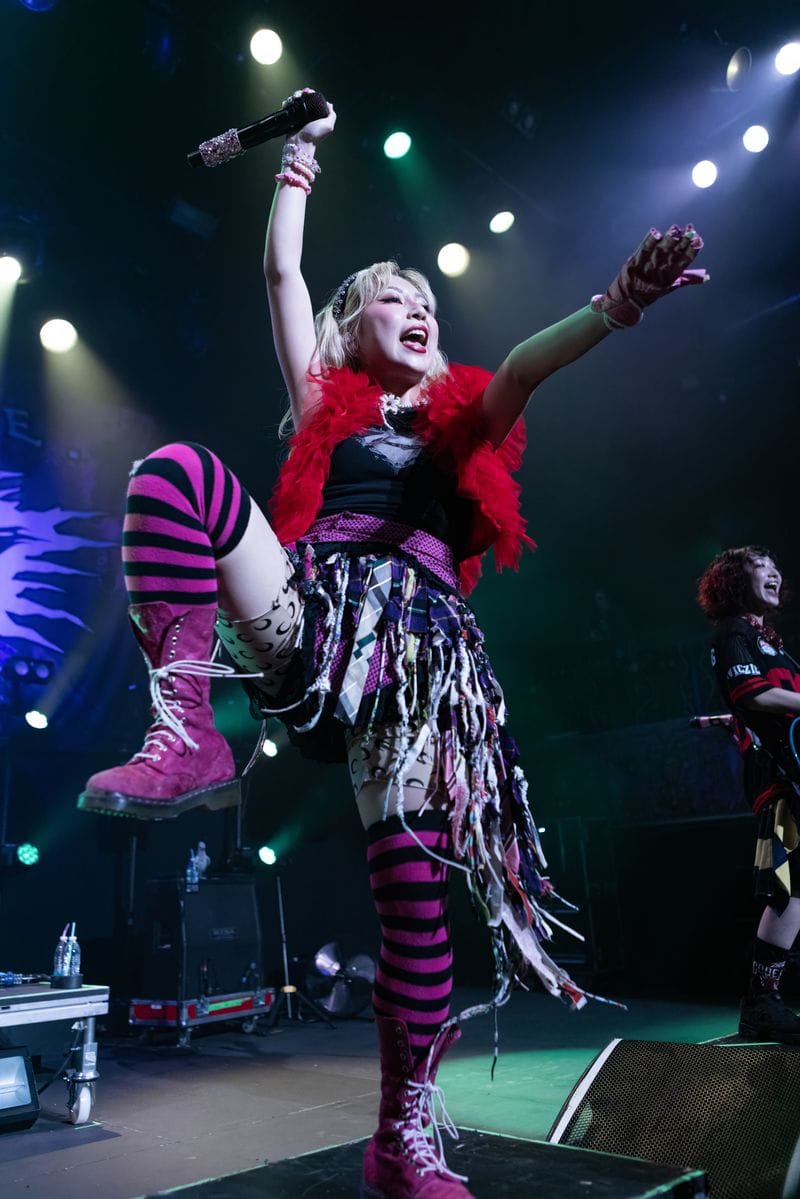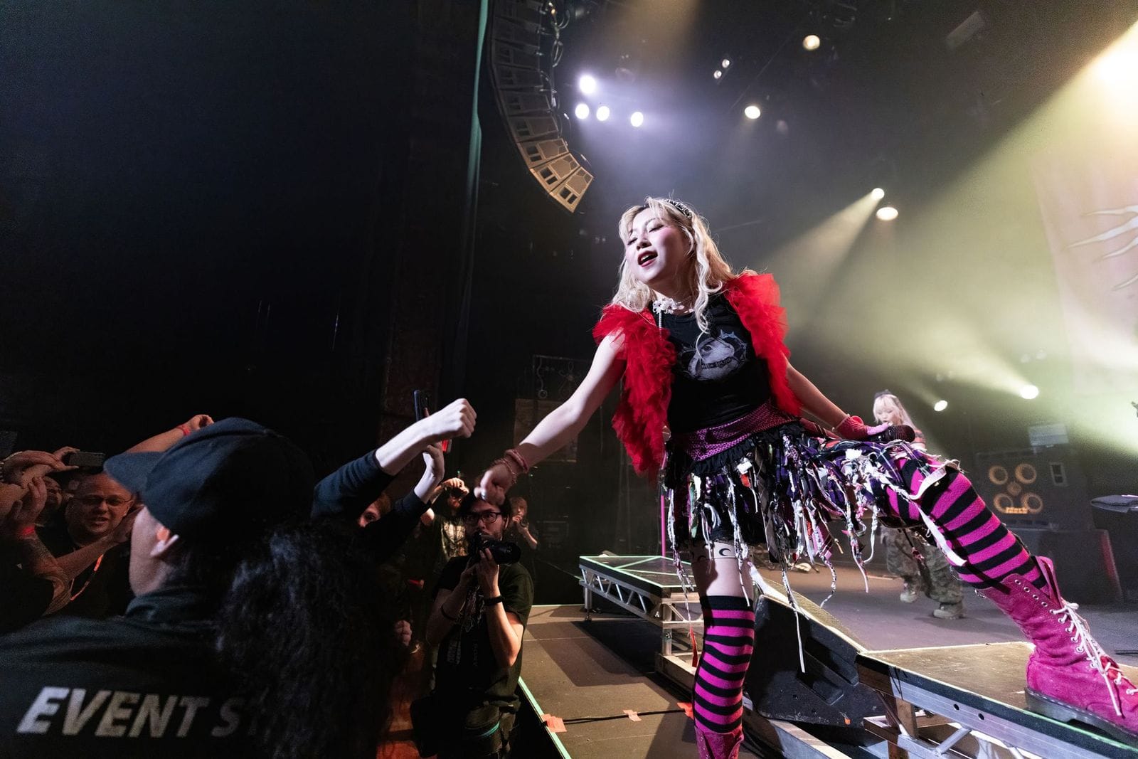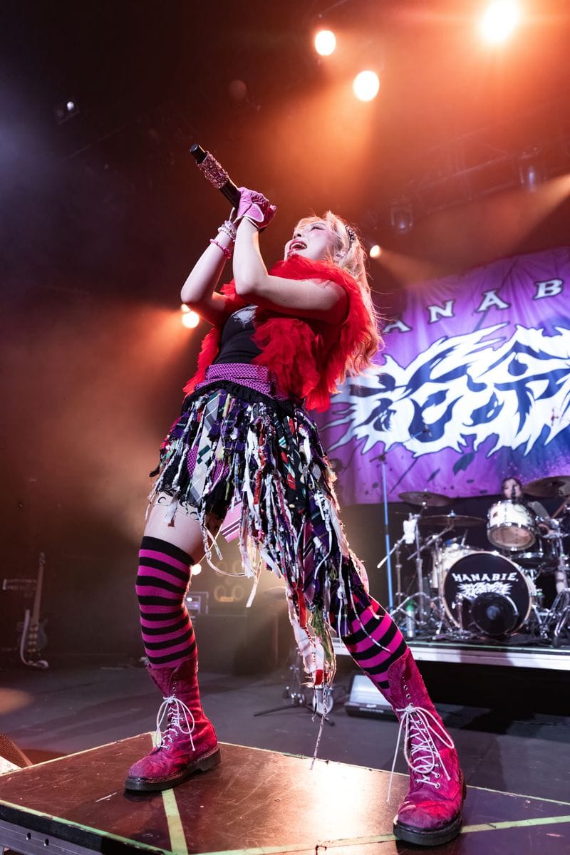 As mentioned, it was odd at first seeing young women dressed in bright colors killing it with heavy music and aggressive vocal stylings to match, but I got past that quickly and moved on to how awesome the show was and what a good time I was having. Unlike BABYMETAL, HANABIE. doesn’t feel like a corporate product put on stage to sell shirts and concert tickets. HANABIE. is a great band that has killer songs and attitude, and their fans were there to celebrate with them. Despite singing in Japanese, people everywhere in the audience sang along with each song.