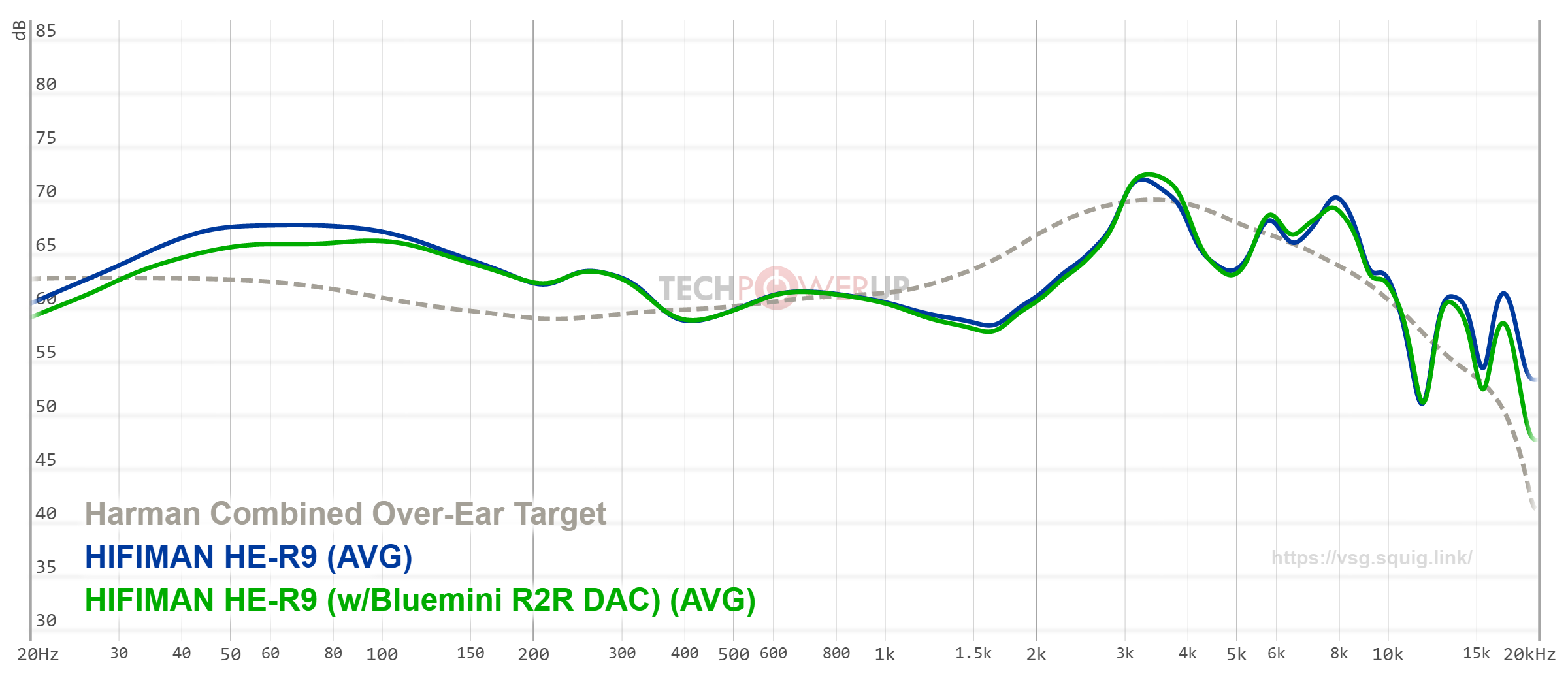In comparison to all other HIFIMAN Headphones we've tried, the HE-R9 is by far the most colorful and bass-driven. Following more of a V-shape sound signature, lows are clearly emphasized, and a slight dip in the low mids helps to lessen bass bleed.