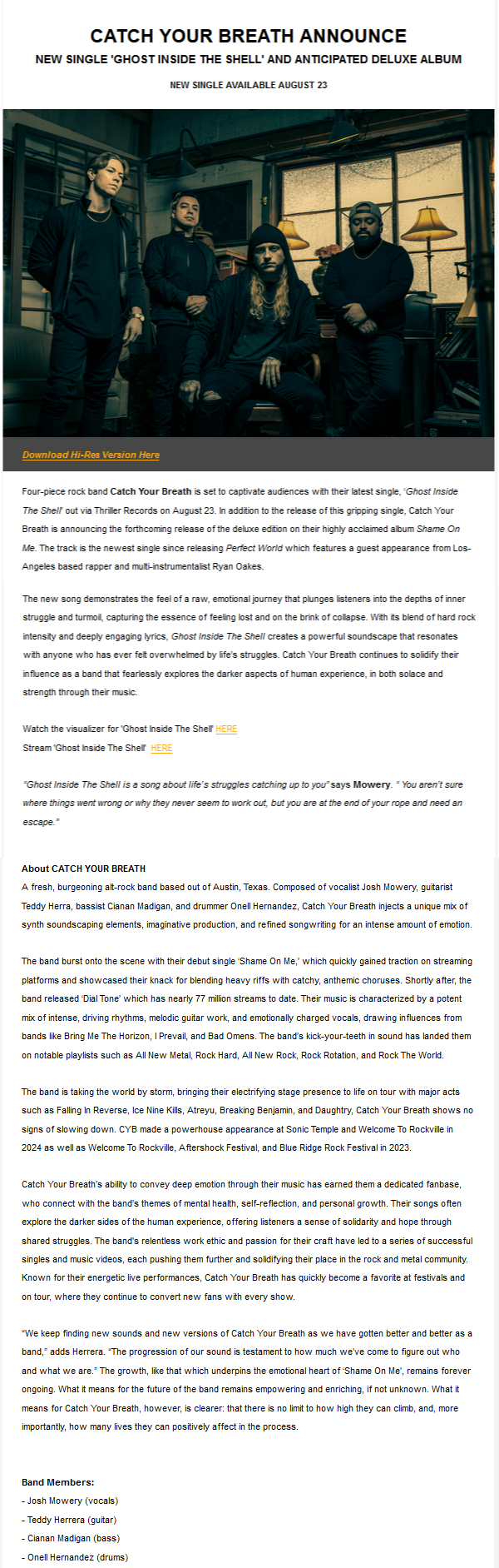 Adding a quote from the band on the new release or song lyrics is another great idea that media outlets often love to include.