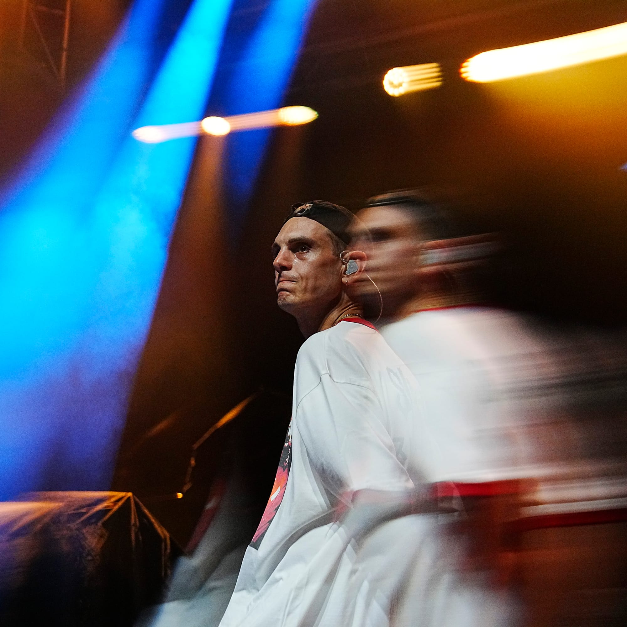 And the stage production? A feast for the senses. Shifting lights bathed the band in deep blues and fiery reds, flickering in perfect synchronization with every pulse-pounding breakdown. Fog curled around their feet, rolling across the stage like smoke from a battlefield, while massive LED visuals loomed behind them, morphing and twisting with the ebb and flow of their set. This wasn’t just a concert—it was a spectacle.