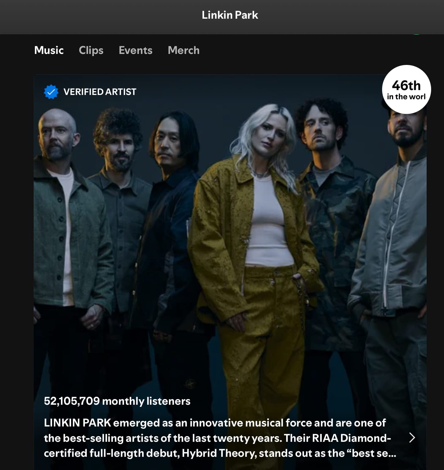 Linkin Park has been one of the biggest rock/metal bands for years but the band has seen an unparalleled spike in popularity since 2022, with the band floating around 20 million monthly listeners and now peaking at an all time high of 52 million.