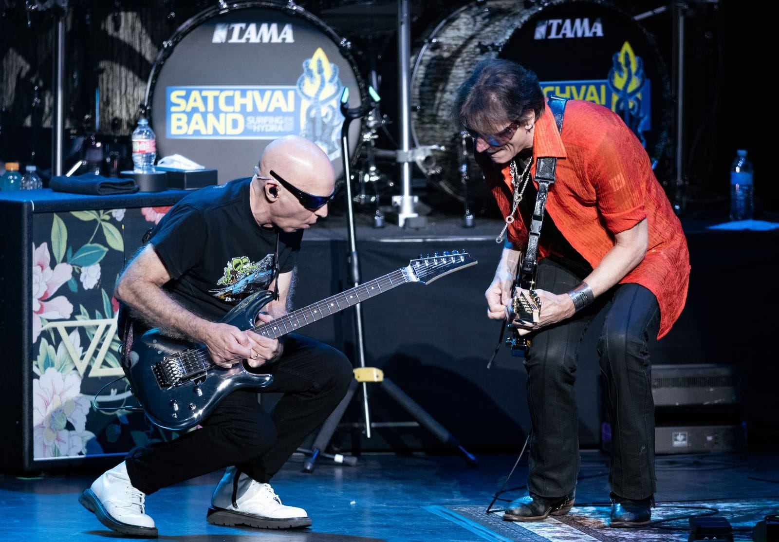 To those outside California, Long Beach, the LBC, is perhaps best known because of Snoop Dogg and Sublime lyrics, or the Grand Prix of Long Beach IndyCar race that takes over its streets each year. It’s a vibrant coastal community south of Los Angeles, and Tuesday night it was taken over by extreme guitar virtuosity. Two of the world’s greatest players, Joe Satriani and Steve Vai, combined forces on stage to showcase impossible-to-comprehend musicianship.