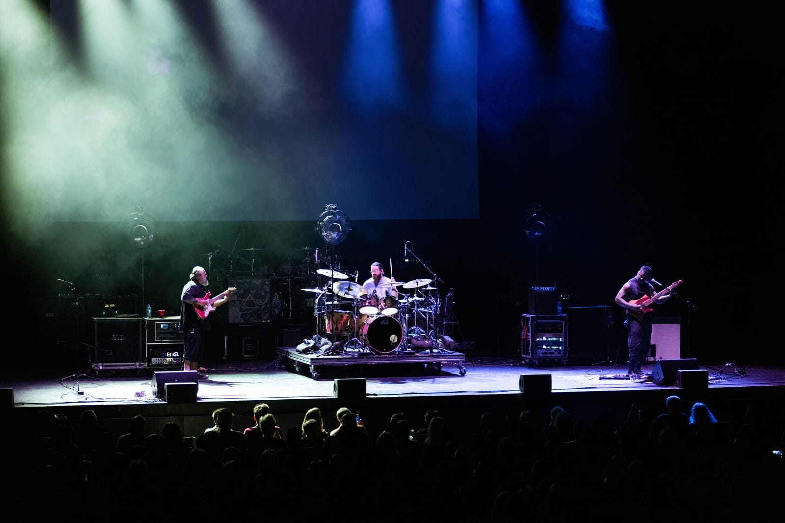 Tuesday’s Surfing with the Hydra Tour stopover was at the Long Beach Terrace Theater. The beautiful venue was built to showcase touring Broadway plays, the Long Beach Orchestra, and live music events. Slipknot wouldn’t do well in this venue, but dueling guitar pyrotechnics were the perfect match. The 3000-seat room actually has that – seats – and the fans made use of them all night. I haven’t been to a rock show in a long time where people sat throughout the performance, but I think with this kind of technical proficiency and next-level axemanship (I think I made that word up), people didn’t want to be distracted, but instead sit and concentrate solely on the music.