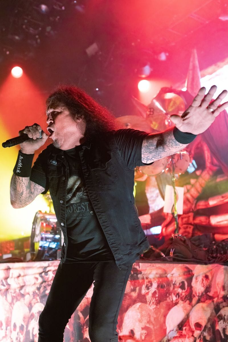 I have a soft spot in my heart for Testament that goes well beyond their music. Thirty-five years ago, my wife agreed to go out with me on our first date. She was a lifelong lover of pop music, and much to her surprise, I instead took her to the Hollywood Palladium to see Testament, a band she’d never heard of, that played a brand of music she didn’t know existed. She wasn’t the only female in attendance, but to say there was a lot of testosterone in the building was an understatement. The night was a blur, and I think she may have been in shock as a result of the metal atmosphere, because she somehow agreed to go on another date with me… I’m happy to write that over the years, metal has won her over, and I think it all stems from that first Testament show at The Palladium in 1991.