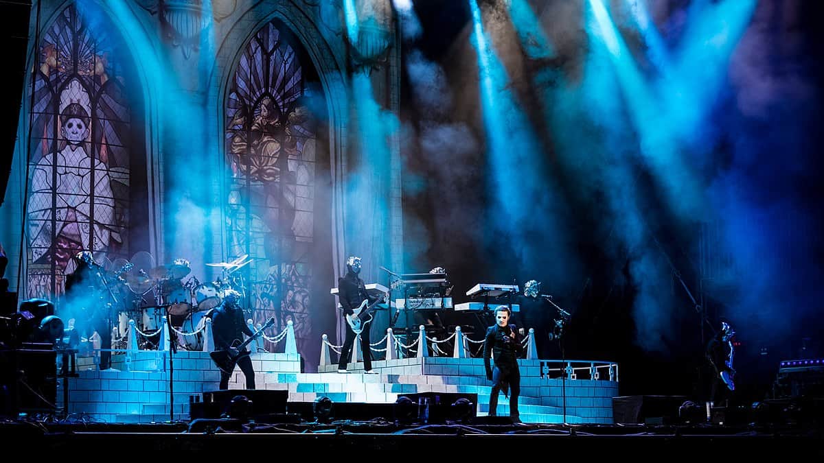 Ghost is a theatrical rock/metal band that is known for their aesthetic that parodies church visuals with the lead singer dressing as a priest (with corpse paint). Ghost's darkly colorful pop sound uses catchy vocal melodies and instrumentals like organs to create a sound that is mixed with rock-style guitar and drums.